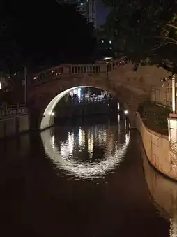After dinner, swap the city bustle for laid-back vibes at Yongqingfang (Pantang Area, Liwan District, Guangzhou 510000, China — open 24/7). This historic district blends old-school Cantonese architecture, winding lanes, and leafy little parks. At night, walk across the stone bridge arching over quiet water, surrounded by dimly-lit buildings and swaying trees — it’s perfect for snapping moody night shots or chilling under the moonlight.