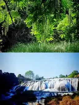 • Doupotang Waterfall is one of the filming locations for "Journey to the West." The waterfall is 105 meters wide and 21 meters high, with a magnificent momentum.