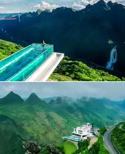 Nestled in the embrace of mountains in Anshun, Guizhou, Yaojia Waterfall View Guesthouse is located in Fanhua Village, Pogong Town, Guanling County. Adjacent to the Shuihuang Highway and just a 10-minute drive from Huangguoshu Waterfall Scenic Area, it faces the Baling River Bridge across the valley and directly overlooks the undeveloped natural wonder—Dishui Beach Waterfall. Perched on a 1,200m-high cliff, the milky-white building resembles a celestial dwelling among clouds, creating a picturesque harmony with green mountains, flowing clouds, and cascading waterfalls, exclusively enjoying the magnificent karst landscape.