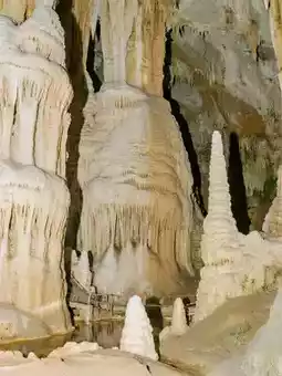A 17-meter-tall "white jade tree" that everyone loves! Pure white and shaped like a pine tower, it looks like an exquisite ivory pagoda from afar and is also one of the "Three Treasures." It formed from water droplets accumulating slowly, going through tower, pine ball, and flower stages, and is still growing. When showing it to kids, you can ask, "Look, this ‘tree’ is still growing. Will it be taller next time we come?"