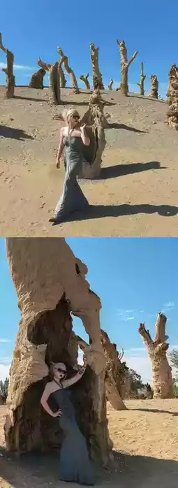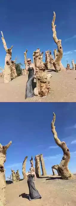❶ Dunhuang Cultural and Museum Park: A celebrity photo shoot location~A hidden poplar forest secret in the desert~Vast desert, endless sea of sand! In Dunhuang Cultural and Museum Park, a winding path paved with 30,000 stone millstones stretches out, symbolizing the transition from agricultural civilization to nomadic civilization. Above the desert, the poplar trees have twisted roots, giving off a bizarre exotic artistic vibe; every shot looks like a fashion magazine spread! 470 poplar trees proudly stand on the sand dunes, overlooking the distant Mingsha Mountain and Sanwei Mountain; 13 museums of various shapes are located here, narrating the civilization of Dunhuang and China. PS: It is very close to our hotel "Gamman Wanda Wenhua Hotel" and within walking distance.