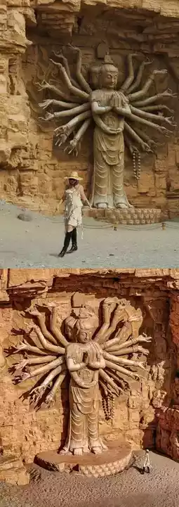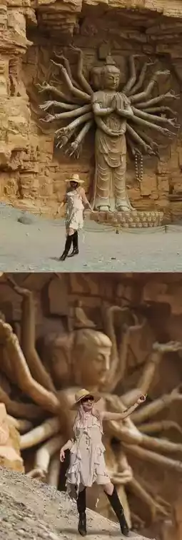 ❸ Guazhou Sculpture Group (Sons of the Earth, Han and Chu Heroic Spirit, Boundless): A large sculpture group on the Gobi Desert in Guazhou County, Gansu Province, created by Tsinghua University professor Dong Shubing. A must-visit for drone enthusiasts, perfect for flying drones with amazing bird’s-eye views! ① "Sons of the Earth" is made of red sandstone pieced and carved, created through 3D modeling and digital technology, then assembled on site. The sculpture depicts a baby lying on the earth, symbolizing the harmonious coexistence of humans and nature, expressing reverence for life and land. ② "Han Wu Heroic Spirit" shows Emperor Wu of Han overlooking the Gobi Desert, with six stones beneath representing the four Hexi commanderies and two passes, showcasing the grandeur of the Han and Tang dynasties. This long history is presented to us in such a powerful and stunning way. ③ "Boundless" is built from pure white giant steel structures, resembling a mirage on the Gobi. Inspired by the mural "Contemplating the Infinite Life Sutra" in Cave 25 of Yulin Caves, it uses visual language to convey the millennium-long spirit and civilization of the Silk Road to the world, expressing our yearning for a beautiful life.