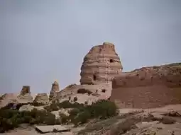 We were practically alone. It was a sandstorm. The minibus makes two stops, and you can walk a bit along marked trails. The atmosphere is haunting, with adobe walls and Han ruins, and the Tang pagoda, which looks like a squat pyramid in the middle of the desert. A very evocative landscape, not far from the Yulin Caves. For me, it's worth it.