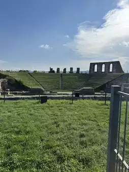 This time, we visited the charming town of Gubbio in Italy 🧳. Here, they have an ancient Roman Theater Archaeological Park 🌲, which is an open-air museum. The entrance fee is three euros, but unfortunately, it is currently closed ❌.