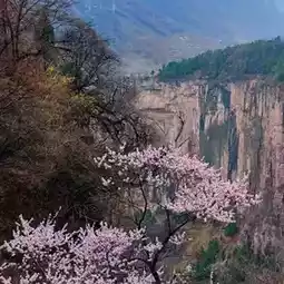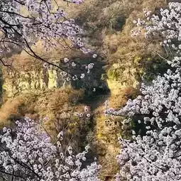 Enjoy this view from every angle. There are different varieties of cherry blossoms here, each with its own uniqueness. Some trees have light pink flowers, while others are bright magenta. The cherry blossoms all over the mountains are dazzling.