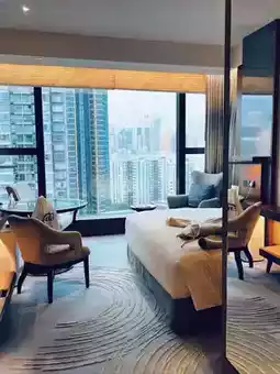 Hong Kong!! Waking up to a stunning 180° view of Victoria Harbor is truly worth it! Imagine waking up and gazing at Victoria Harbor—what an experience that must be.
