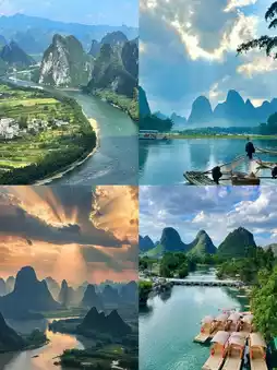 ✨Tip: The Li River has abundant water from April to October, and the misty mountains and rivers are even more photogenic! Choose Yangdi→Xingping section for bamboo rafting, and visit all the highlights