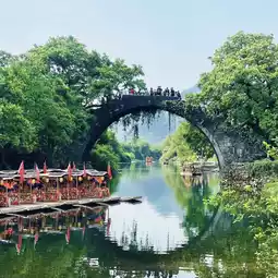 Afternoon: Take the high-speed rail to Yangshuo Station and take a taxi to Xingping Ancient Town. When you arrive at Xingping Ancient Town, stroll on the bluestone-paved streets and feel the historical charm of the ancient town. Next, you can go to the [20 Yuan Check-in Spot] to take photos, which is a ten-minute walk from Xingping Ancient Town. You can take a bamboo raft to tour the Li River or rent a Hanfu costume and take photos on the raft to enjoy the beautiful scenery of water and mountains.