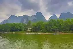 🏞️ Li River Scenic Area: Picturesque karst peaks and emerald waters create a flowing ink painting of breathtaking beauty!
