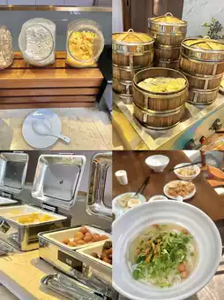 Hot dishes (fried rice🍜, noodles, stir-fries, boiled eggs🥚, etc.), cold dishes, freshly made Guilin rice noodles, fruits, salad🥗, coffee☕️, milk🥛, and soy milk—all served buffet-style. We ate heartily every morning. The flavors were authentic and light, perfect for older tastes. My parents, who usually dislike heavy flavors, loved the hotel’s meals.
