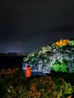 Walking from Fubo Cultural Park toward Xiaoyao Tower, you’ll find a breezy riverside path with stunning Li River night views. Along the way, locals fish (Li River fish is delicious!). When you hear the music of square dancers, look up to see the dazzling Liberation Bridge.