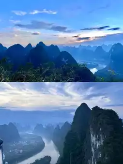 📍Xianggong Mountain (Huangbu Beach): 15-min hike rewards with Li River's first bend amid sunrise clouds