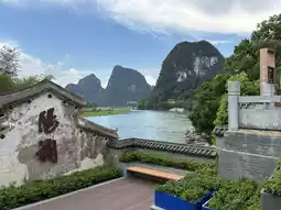 Take the River Cruise and get off at Yangshuo Longtoushan Pier, along a long covered walkway + roadside stall souvenir street, walk to the end you will see this restaurant on the left front roadside restaurant facing the river view, the view is really unbeatable, good seat and chill .