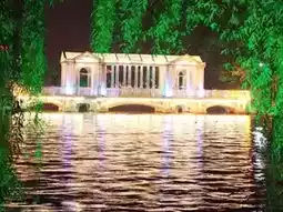 The glass bridge at Guilin’s Banyan Lake takes on a dazzling new look at night. Lit by vibrant-colored LED lights—ranging from azure and emerald to magenta—it transforms into a glowing ribbon over water. Reflected in the calm surface of the lake, the illuminated bridge creates a surreal scene. Paired with softly lit trees and architecture nearby, it becomes a romantic focal point for night strolls or evening cruises in the Guilin Scenic Area.