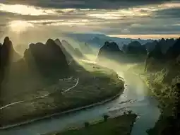 **Guilin**, located in Guangxi Province, China, is renowned for its stunning karst landscapes. The breathtaking scenery of limestone cliffs and river views along the Li River makes it a must-visit destination.