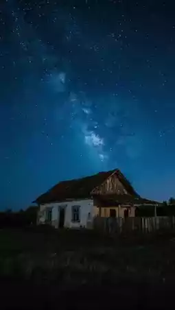 | Old house under night starry sky | Long exposure of "Milky Way crossing over flying eaves" |