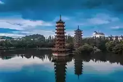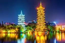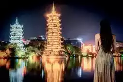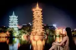 From the copper textures of the towers by day to the flowing light and shadow at night, from the osmanthus tea fragrance by the lake to the rice noodle flavors in the alleys, the area around the Sun and Moon Twin Towers holds the most authentic charm of Guilin. Spend half a day here strolling, sightseeing, and tasting to truly understand the gentle spirit of this mountain-water town.