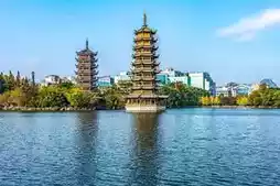 Hidden in Guilin’s Shanhu Lake in the city center, the Sun and Moon Twin Towers are dazzling gems in the Two Rivers and Four Lakes water system— the Sun Tower, cast from 350 tons of copper, is the tallest copper tower in the world; the Moon Tower, covered with warm glazed tiles, faces the Sun Tower across the lake. By day, you can admire the craftsmanship details, and by night, it transforms into a secret realm of light and shadow. Combined with the surrounding walkable mountains, waters, and lively atmosphere, it forms the most pleasant sightseeing loop in Guilin. This guide will take you deep into exploring the Twin Towers and nearby areas to experience the unique charm of this mountain-water city.