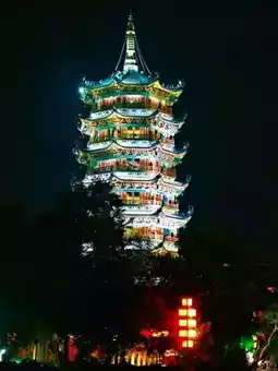 For night views in Guilin, it has to be the "Sun and Moon Twin Towers"💫