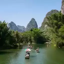 Villages cling to the riverbanks, bamboo forests sway quietly, and tiny boats drift by like moving brushstrokes on a Chinese ink painting. When the mist hangs low, the whole world becomes soft and mysterious — the kind of view you can’t quite believe is real until you're right there breathing it in.