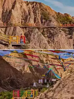 50 km of continuous earth forest! Hike the plank road to check in at "Divine Camel Asking Buddha" and "Natural Bridge," recommended to visit after 4 PM when the light gilds the red colors, creating a magical effect