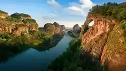 1. Luxi River Bamboo Rafting: A must-try! The river water is emerald clear, and the Danxia mountain shapes on both sides are uniquely bizarre. The boatman will also share interesting legends about the rocks like “Don’t eat the immortal peach” and “Don’t comb with the jade comb.” The whole trip takes about 40 minutes, and the gentle breeze is especially pleasant.