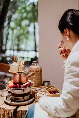 ✔ Slight rain relaxation mode: bamboo forest rain cooking tea + indoor barbecue western food