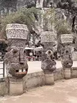 🔸Morning: I've always wanted to go to Yelang Valley. I took a taxi🚖 from the hotel, which cost about💰20–30. The artist Song Peilun👨🎨 seems to have created these stone statues in his own image. The details are very interesting; the eyes and mouths are made of tiles. Seeing the comparison photo from 1997 and the scene in front of me now was quite shocking! There were some intangible cultural heritage craftspeople scattered around the park. It was admirable to watch them make all kinds of small things up close👍🏻. Later, I found a pottery workshop through a hidden back door and learned how to mold clay with the teacher👩🏫.