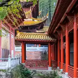 The Erwang Temple is hidden in the green mountains and forests like a quiet paradise. The quaint buildings, red brick and tile roofs and green pines exude a historical charm.