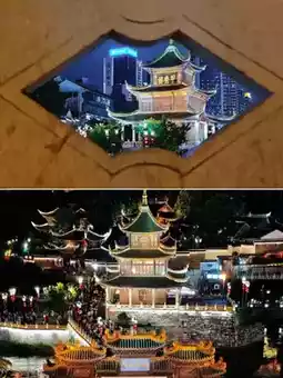 Highlights: Panoramic Nanming River views from the tower, photograph the "Southern City Relics" stone archway and ancient Cuiwei Garden complex - soft evening light perfect for photos.
