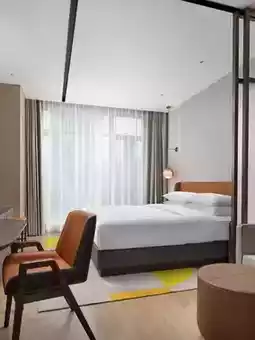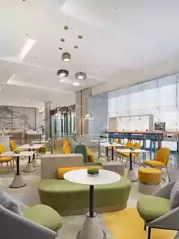 ✈️ Seamless transition from landing to working: Just 10 minutes from the airport to the hotel. Hold impromptu video conferences in the oasis lounge area with warm wood-toned frames and greenery as your backdrop – pure sophistication!