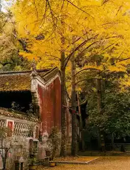 🌳 Natural Scenery: Towering ancient trees and lush greenery envelop Feiyun Cliff. In autumn, golden ginkgo leaves flutter down, covering the ancient temple, stone tables, and courtyards like a dreamy "golden carpet." A small river runs nearby, and a short walk upstream leads to a waterfall. Though sometimes slender, the waterfall has its own delicate charm—imagine how majestic it must be during the rainy season!