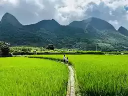 2. Rice fields amidst peak forests, take sightseeing bus uphill, rent e-bikes for free exploration.