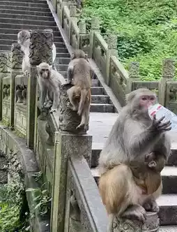 Took a taxi to the South Gate, rode the cable car to the mountaintop, then hiked down to **Hongfu Temple**. After burning incense, we enjoyed a 10-yuan vegetarian meal. The pavilion at the temple exit was filled with playful monkeys—utterly adorable.