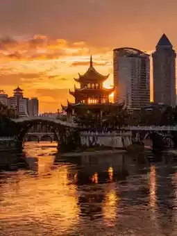 The 32-meter-long Floating Jade Bridge connects the bustling riverbanks
