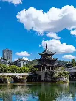 ✨This ancient pavilion, built during the Wanli period of the Ming Dynasty (1598), stands quietly on Aotou Ji in the Nanming River, guarding the dawn and dusk changes of Guiyang for six hundred years under the name "Ke Jia Ting Xiu" (Outstanding Scholars)~