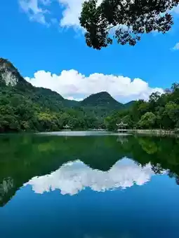 Captured the oil painting scene of blue sky and white clouds reflected on the lake!