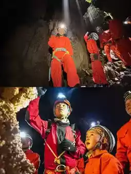 ! Wear a headlamp to explore the Tiandong cave! Learn to tie knots in the stalactite maze, challenge the 15-meter rock wall rappel, and you can get an international cave exploration certificate after passing it📜