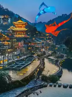 ✔ Zhenyuan Ancient Town 🏮 – A riverside old town with a mix of Daoist temples and Ming-Qing architecture.