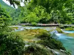 #holidayitinerary Visiting Xiaoqikong Scenic Area in Libo, Guizhou was like stepping into a fairytale. The highlight is definitely the old stone bridge with seven arches surrounded by turquoise water, lush greenery, and gentle waterfalls. It felt so peaceful just standing there, taking in the view that looks like a painting. Walking along the paths, I discovered crystal clear rivers, caves, and smaller waterfalls that added to the sense of adventure.