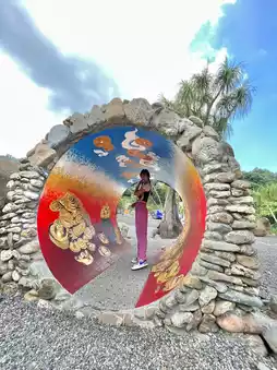 Pass through 4 painted prayer tunnels.