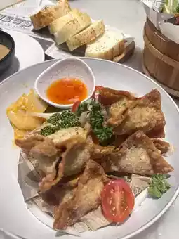 Freshly fried until golden brown, dipped in Thai sweet and spicy sauce is very appetizing
