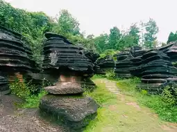 -Unique "spray-shaped" and "pagoda-shaped" stone pillars,
