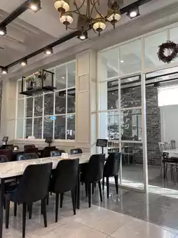 The interior of the restaurant is spacious and clean, with a variety of seating options ranging from tables for four to group seating.