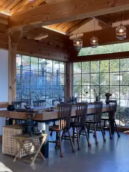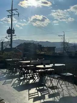 And if you go straight, there are 4 outdoor tables in front of the wall, and inside, there is a separate bathroom with "Haewooso" written on it.