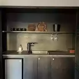 ▫️Indoor jacuzzi, Fire pit, tea room, kitchen, beam projector, Bang & Olufsen sound bar, Dyson hair dryer, hand drip set, eco-friendly solid amenities, room spray, bath salts provided