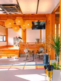 the second floor was clean wood-toned while maintaining the atmosphere of a Hanok.