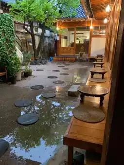 A pancake cafe in a Korean style house located in Hwangridangil