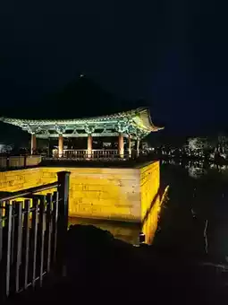 Donggung Palace and Wolji Pond, one of Gyeongju's most iconic night view attractions, is a historic site that combines a royal villa and an artificial pond from the Silla Dynasty. Especially at night, when the lights illuminate the area, the reflection of the pavilion on the pond creates a magical scenery that captivates many visitors.