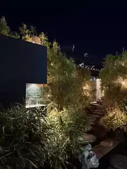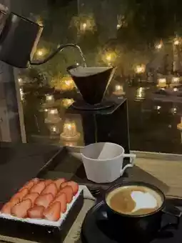 The hanok-style building welcomes you, and as you step inside, you'll find a pond that makes every photo look stylish! At night, the lights illuminate the pond, creating a reflection that feels like a scene from a movie.